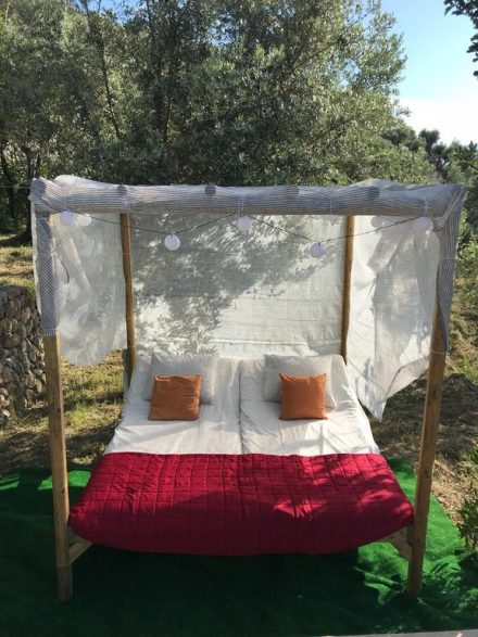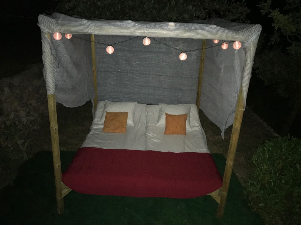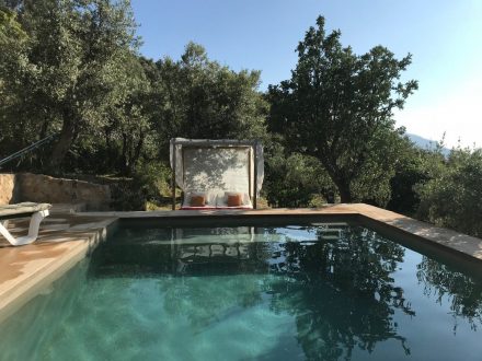 We have a nice private swimming pool & sunbathing area with sunloungeurs & a wooden chill out bed.